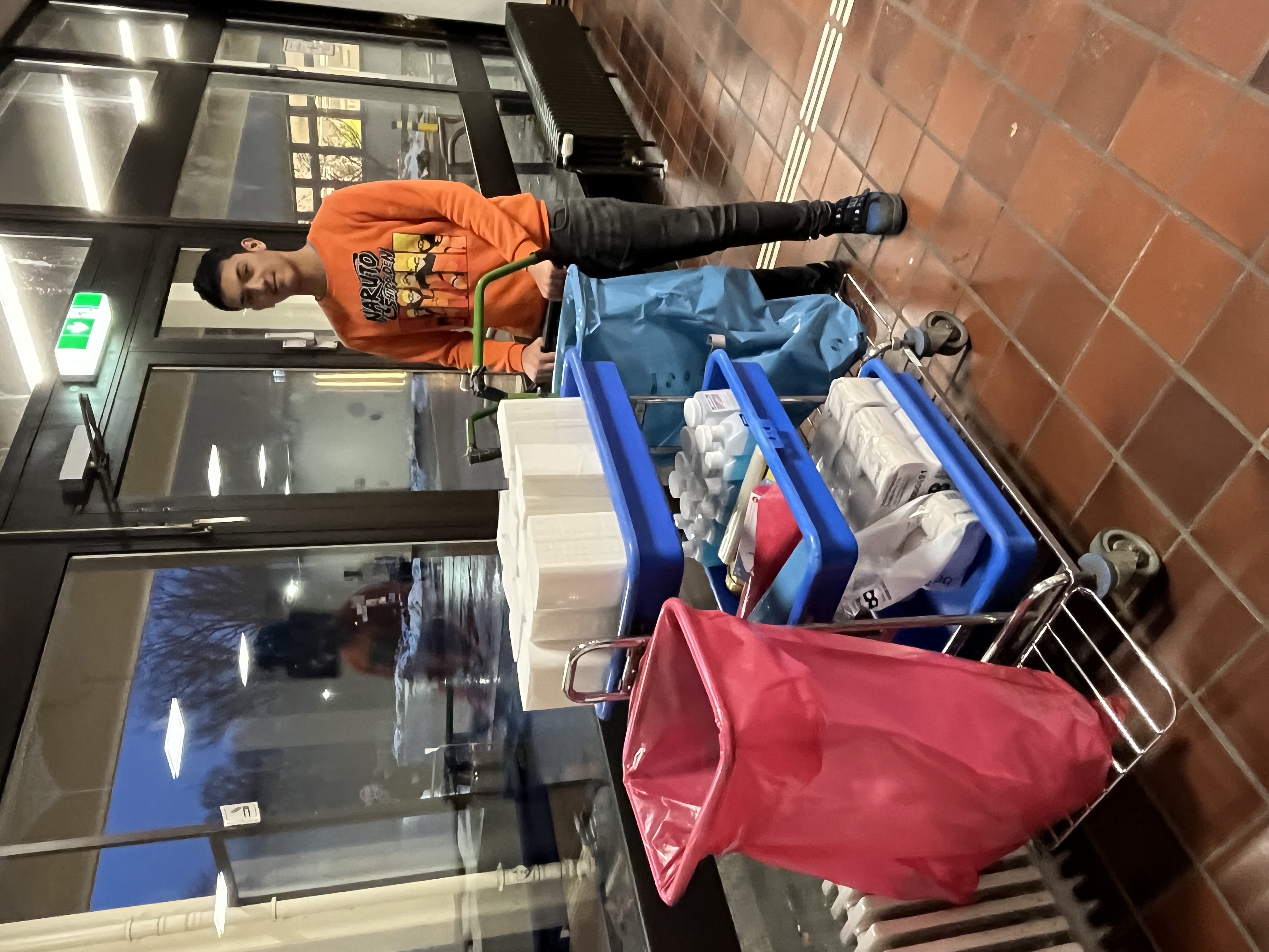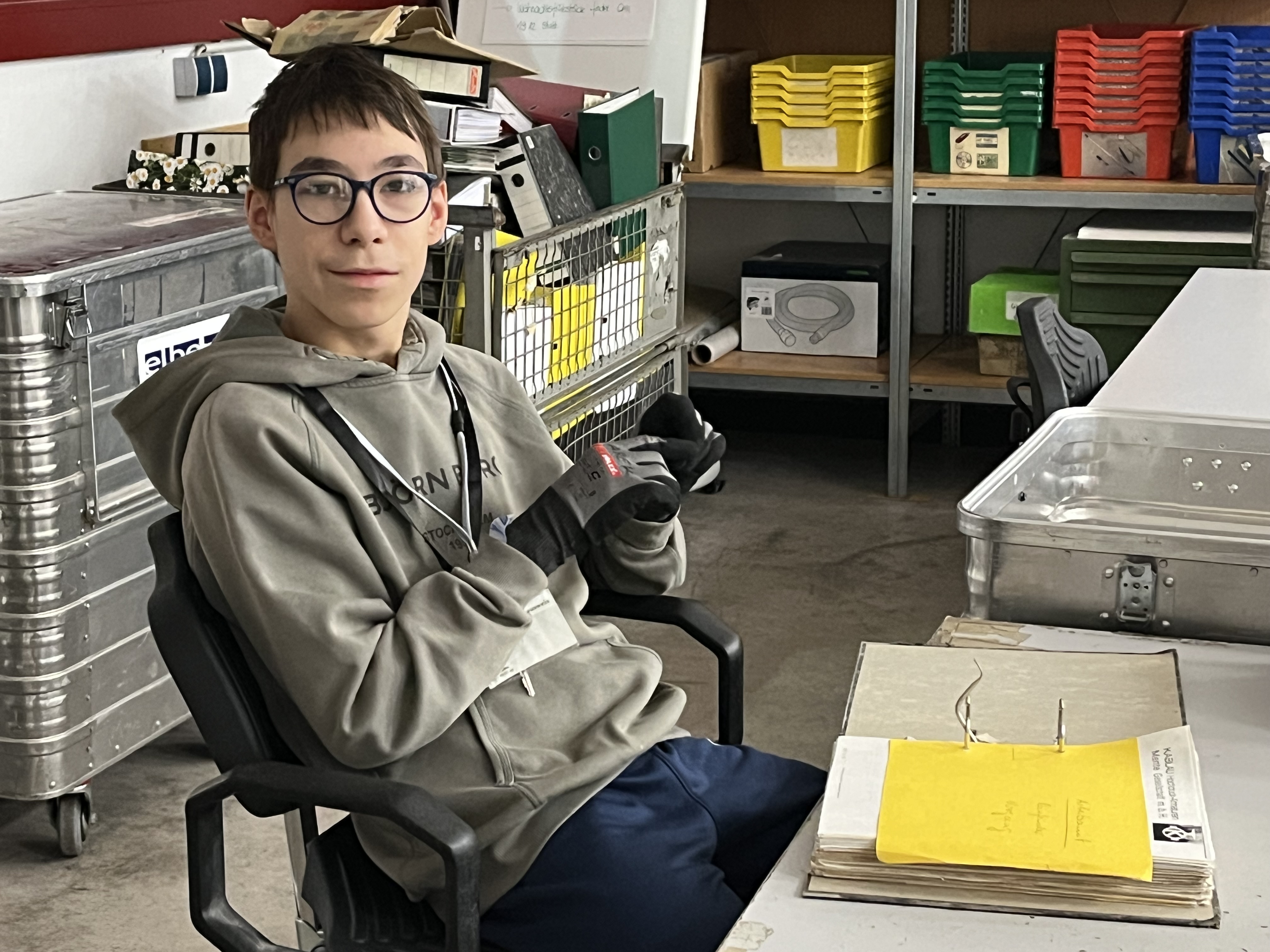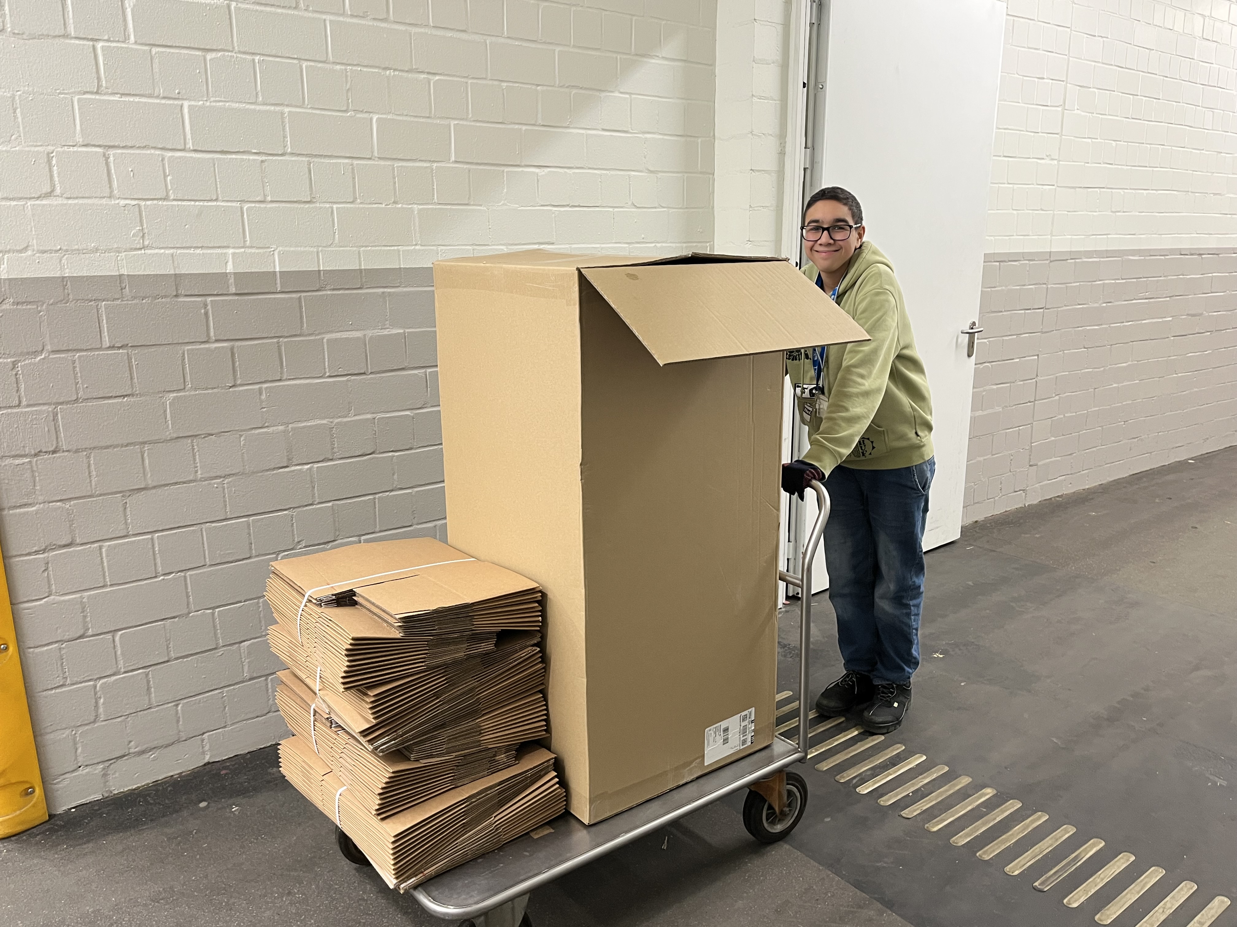 Am ersten Tag mussten alle Schüler:innen der Klasse 10b um 8.00 Uhr vor dem Eingang der Elbe Werkstätten sein und als alle da waren sind wir ins Büro gegangen um unsere Arbeitsschuhe abzuholen. Und als wir zu den verschiedenen Arbeitsgruppen gingen, haben wir noch Arbeitskleidung bekommen. Danach haben wir angefangen zu arbeiten.
